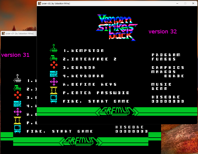 One image shows performance at zoom 3 and the other at zoom 4. This means that the window height and width were 3 and 4 times, respectively, larger than ZX Spectrum's screen.